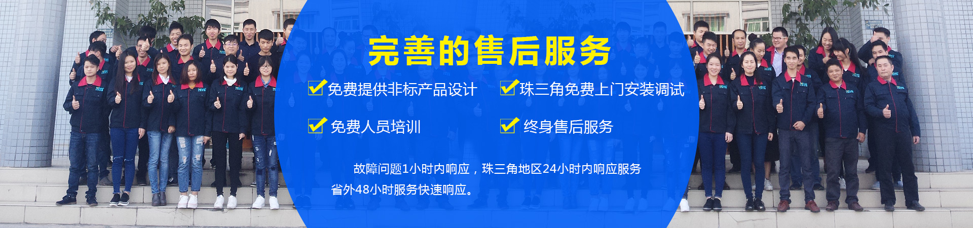 6.做您專屬的技術指導專家24小時在線客服,全天候技術支持! 專業技術人員上門交機培訓,指導機器操作,并培訓機器后續維護保養,提高機器使用壽命,一年免費保修維護,專業的售后團隊,保證故障問題1小時內響應,珠三角地區24小時內上門,廣東省外48小時內上門。 |